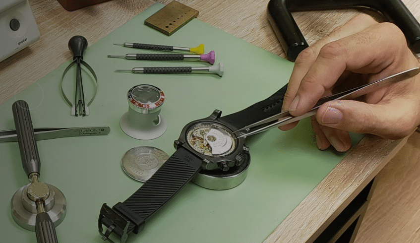 The watchmaker receives your watch and starts scrutinizing it to determine the exact problem and estimate the amount of work needed to be done. Immediately after the approval of the estimate, the work begins.